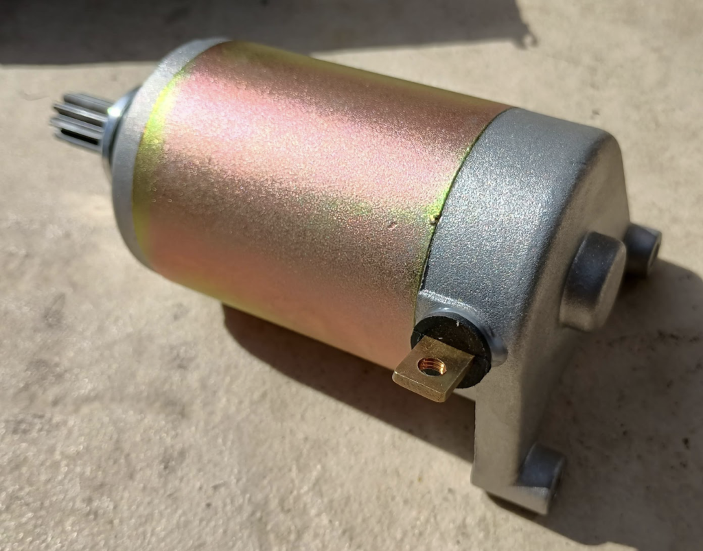 翌日、バッテリーを再度充電してからエンジンを始動してみたら、なんと今後は一発で始動できてしまいました。ただ調子にムラがある感じがするので、セルモーターはやはり新品に交換することにしました。