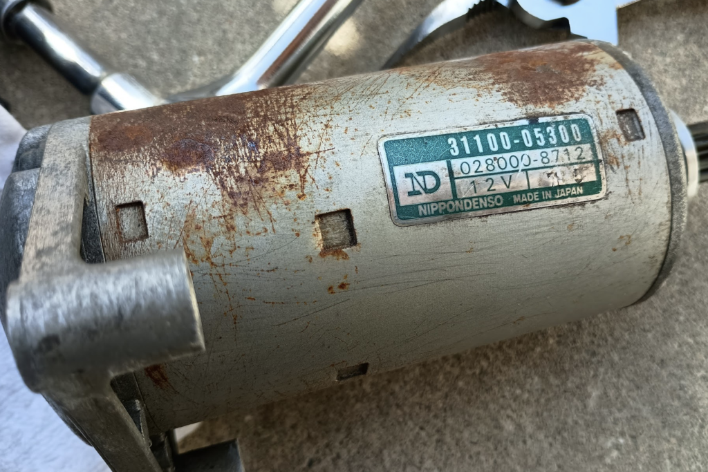 取り外したセルモーターは「NIPPONDENSO MADE IN JAPAN」となっておりました。品番は「31100-05300 028000-8712」のようです。おそらく新品ではもう手に入らないのではないでしょうか。