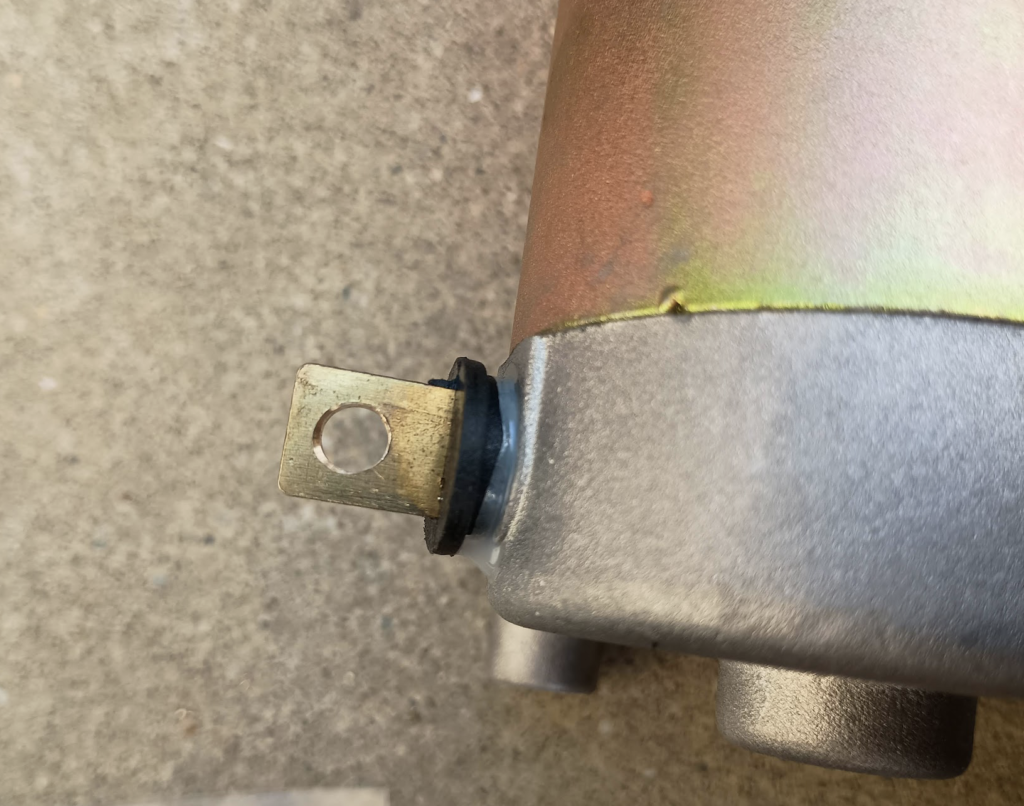 ちなみに元々ある純正のGN125Eのセルモーターはこのような感じ。形状が明らかに違うっぽい。